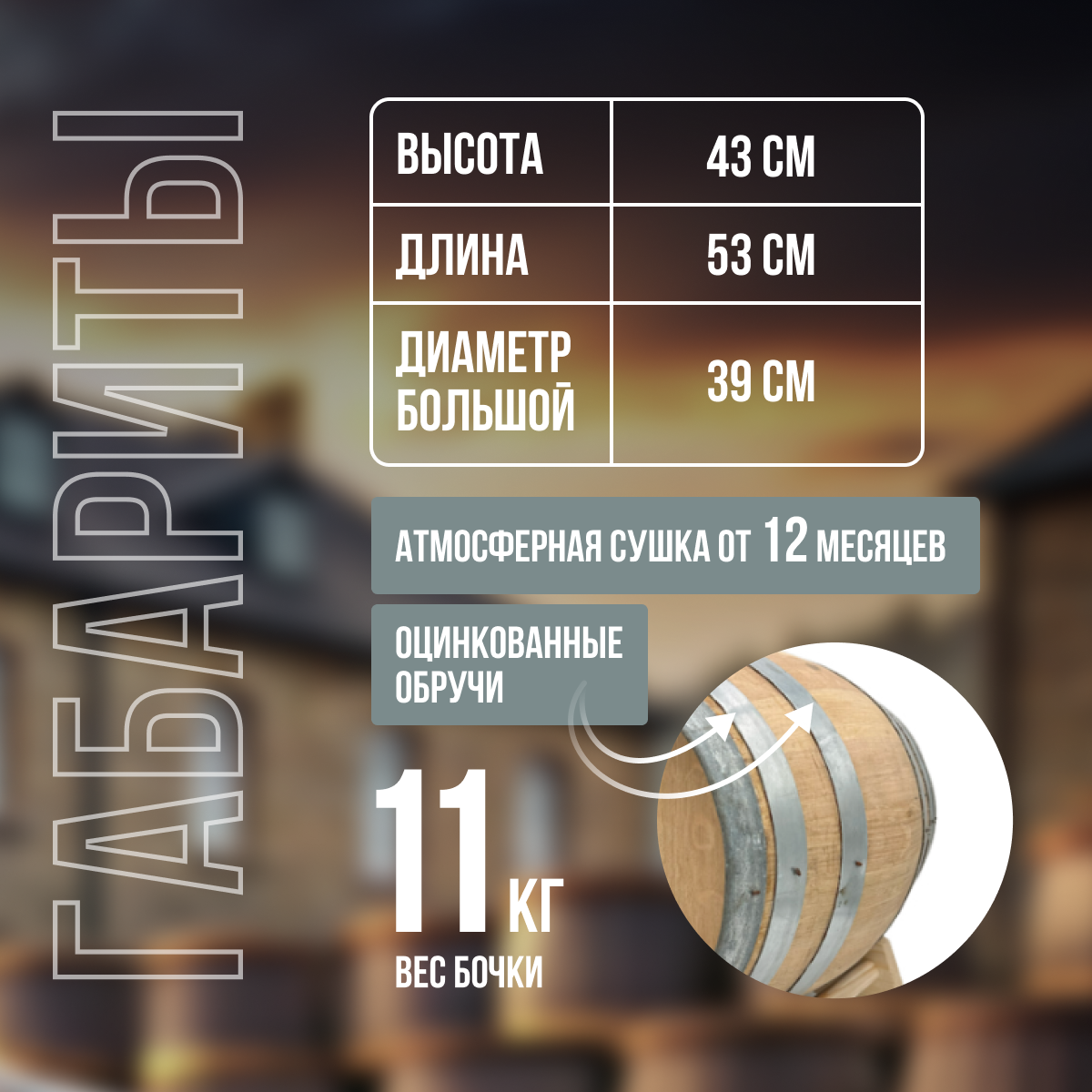 Благодаря специальной технологии STR, клепки были собраны в меньший объем, а затем бочка дубовая 30 л прошла сазонирование в течение 6-8 месяцев с применением сладкого крепленого вина Москатель из Португалии. Этот процесс насытил древесину неповторимыми ароматами цветов апельсина, спелой груши, мандарина и цедры, которые, несомненно, передадутся вашему напитку, обогащая его вкусовой букет.