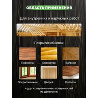 Высокопрочная пленочная гибридная пропитка по дереву для внутренних и наружных работ. Для деревянных строений из бруса, бревна, для покрытия обшивок из вагонки, блокхауса, планкена, а также для покрытия окон, дверей и других вертикальных поверхностей из древесины. Возможно применение на потолках. Подходит для лиственных и хвойных пород древесины.