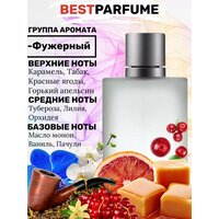 Верхние ноты: розовые ягоды, горький апельсин, табак, карамель.