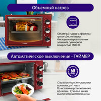 Купить Духовка духовой шкаф мини-печь LUMME LU-1708 28 литра гриль бордовый гранат с доставкой по всей России.