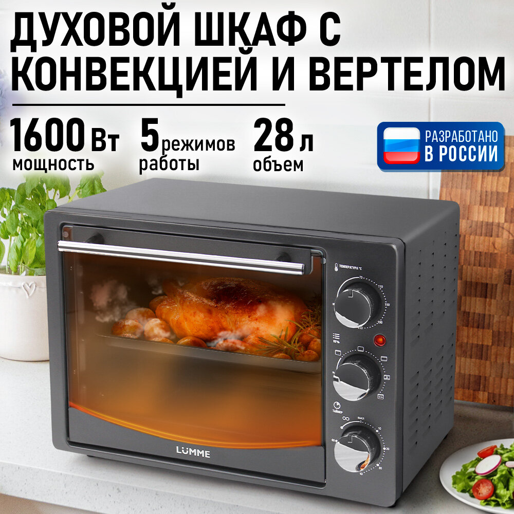 вертел, держатель для противня/решётки, поддон для сбора крошек, противень, решётка