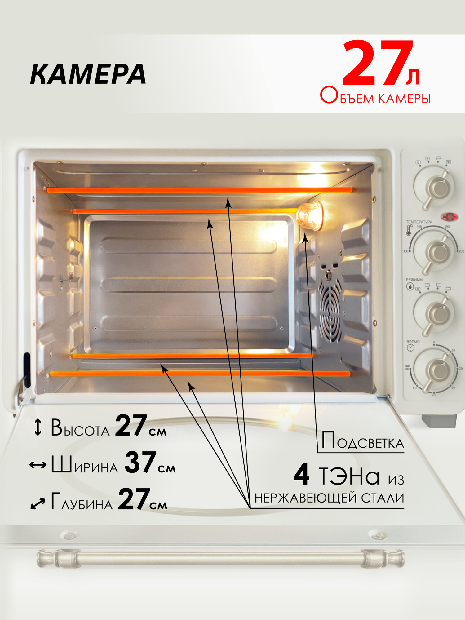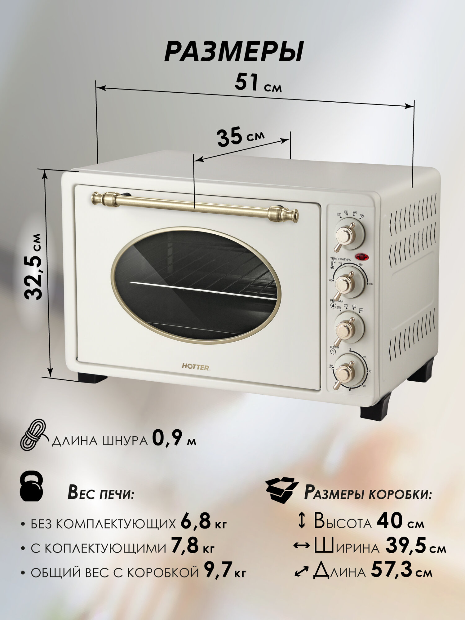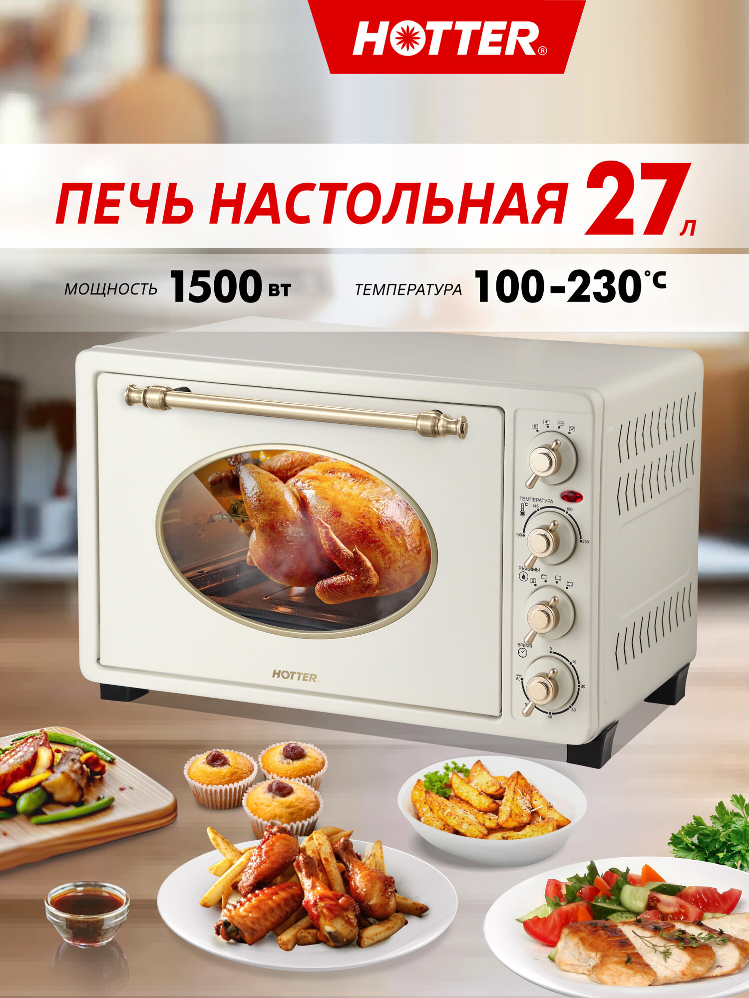 Духовка электрическая настольная с конвекцией HOTTER HX -27, объем 27 литров, 1500Вт. бежевая: сравнение цен, характеристики, фото, актуальное наличие и цены.