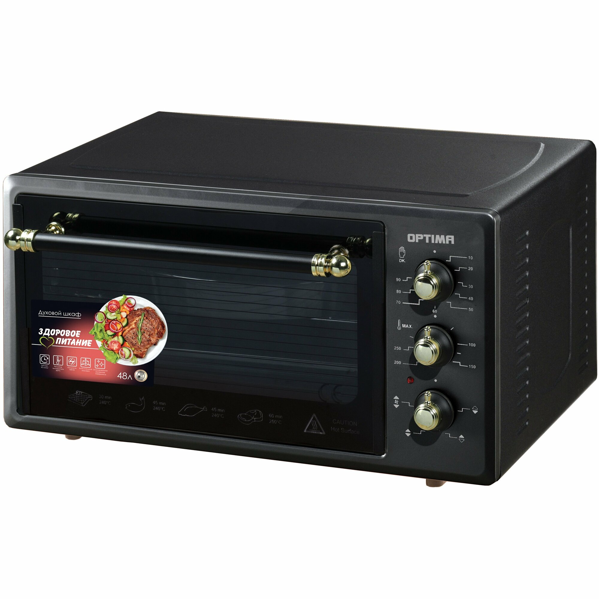 Духовка электрическая OPTIMA OF-48BLR 48л, таймер, лампа, противень 2шт, решетка, черный, 1600Вт: сравнение цен, характеристики, фото, актуальное наличие и цены.