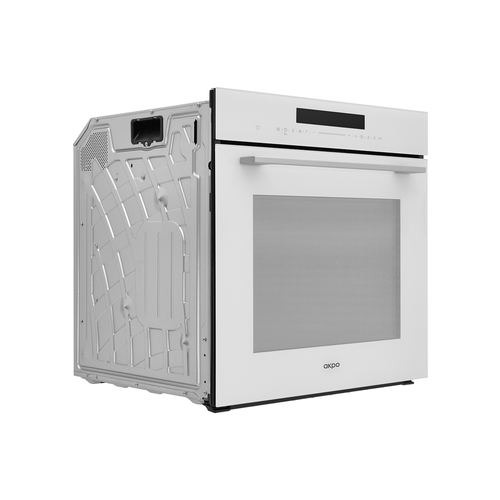 Встраиваемый электрический духовой шкаф с функцией СВЧ, рабочей камерой 72 литра, полностью сенсорным управлением, гидролизной очисткой и направляющими из нержавеющей стали (5 уровней), выпускаемый под польским брендом AKPO (акпо).