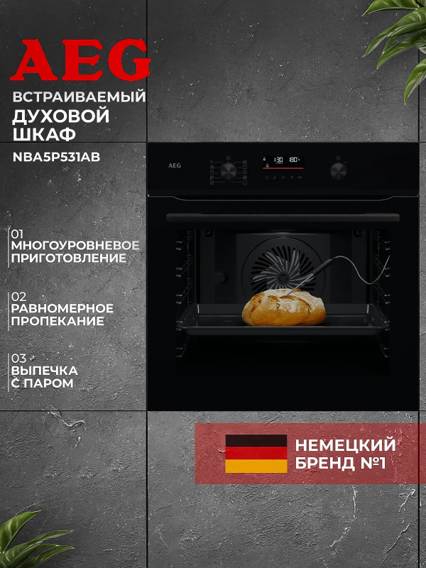 Духовой шкаф электрический с паром AEG NBA5P531AB, 71 л, термощуп, пиролитическая очистка, A+, черный: сравнение цен, характеристики, фото, актуальное наличие и цены.