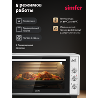 Духовой шкаф электрический Simfer настольный, 5 режимов, паровая готовка, таймер, конвекция, 5 ЛЕТ гарантия, турция