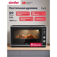 Купить Духовой шкаф электрический Simfer настольный, 50л, 2стекла, 5 режимов, конвекция, таймер, вертел, 5 ЛЕТ гарантия, турция с доставкой по всей России.