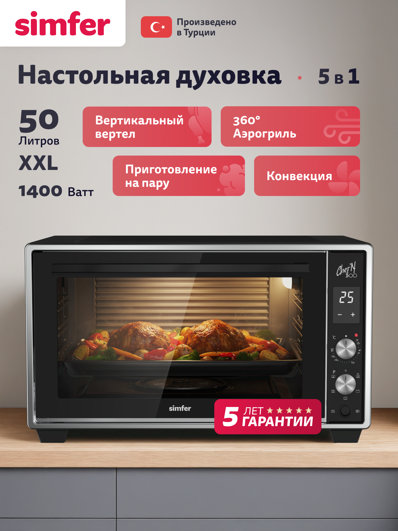 Духовой шкаф электрический Simfer настольный, 50л, 2стекла, 5 режимов, конвекция, таймер, вертел, 5 ЛЕТ гарантия, турция: сравнение цен, характеристики, фото, актуальное наличие и цены.