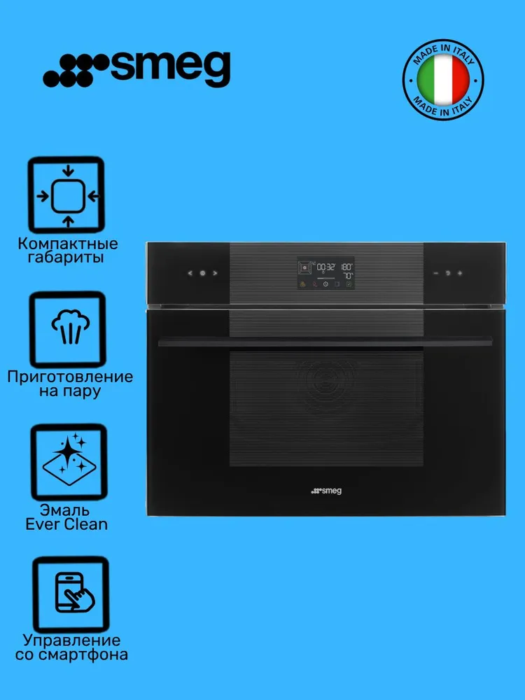 Духовой шкаф Электрический SMEG SO4102S3B3, комбинированный с паром, стекло Deep Black (чёрное): сравнение цен, характеристики, фото, актуальное наличие и цены.