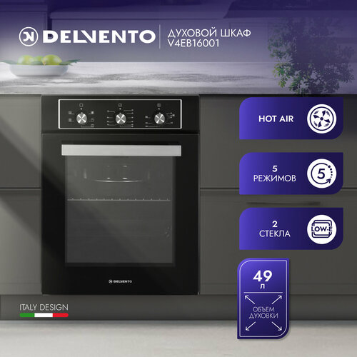 Встраиваемый духовой шкаф Delvento станет незаменимым помощником любой хозяйки. Духовой шкаф обладает многими универсальными функциями, которые помогут готовить не только быстро, но и с удовольствием. Духовой шкаф – техника, без которой не обходится практически ни одна кухня. В нем можно тушить и запекать мясо, рыбу и овощи, печь кексы, пироги и готовить другие аппетитные блюда. Основные характеристики: ширина встройки 45 см Super slim габариты (ШхГхВ) : 45х56,6х59,5 см цвет : черная эмаль функции: верхний нагрев, нижний нагрев+конвекция, верхний+нижний нагрев, верхний+нижний нагрев+конвекция, очистка паром. функция " конвекция" Special Heating System механический таймер на 90 мин со звуковым оповещением Remaining Time System поворотные кнопки управления 2-е остекление дверцы Double Protection Low-E внутреннее покрытие Эмаль легкой очистки Easy Clean System полная комплектация аксессуаров Full Accessories Set : стандартный противень, круглый противень, хромированная решетка. страна производства: Турция гарантия: 3 года
