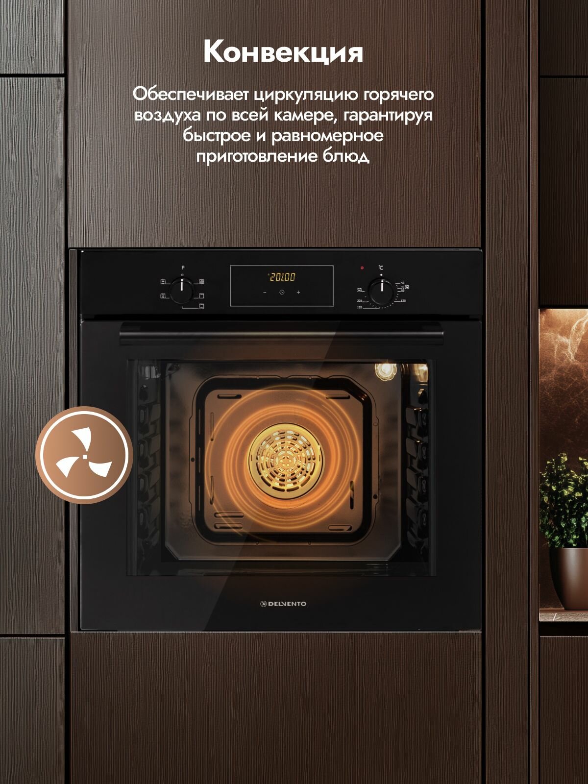 Духовой шкаф электрический встраиваемый DELVENTO 60см, конвекция, 60л, 5 режимов, таймер, 2 стекла, 3 года гарантии
