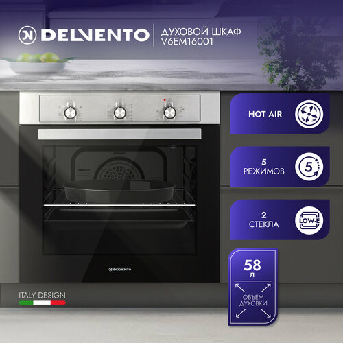 Встраиваемый духовой шкаф DELVENTO станет незаменимым помощником любой хозяйки. Духовой шкаф обладает многими универсальными функциями, которые помогут готовить не только быстро, но и с удовольствием.