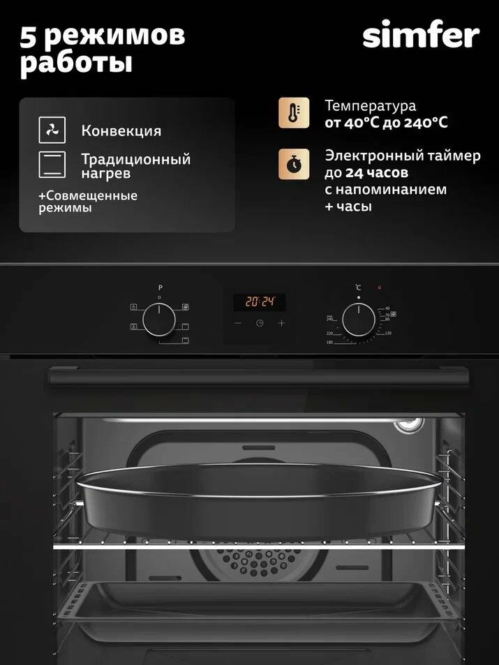 Духовой шкаф электрический встраиваемый 60см Simfer, 5 режимов, 60л, конвекция, 2 стекла, 2 противня, 5 ЛЕТ гарантия: сравнение цен, характеристики, фото, актуальное наличие и цены.