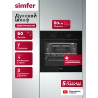 Купить Духовой шкаф электрический встраиваемый 60см Simfer, 60л, гриль, конвекция, 2 противня, 7 режимов, 5 ЛЕТ гарантия с доставкой по всей России.