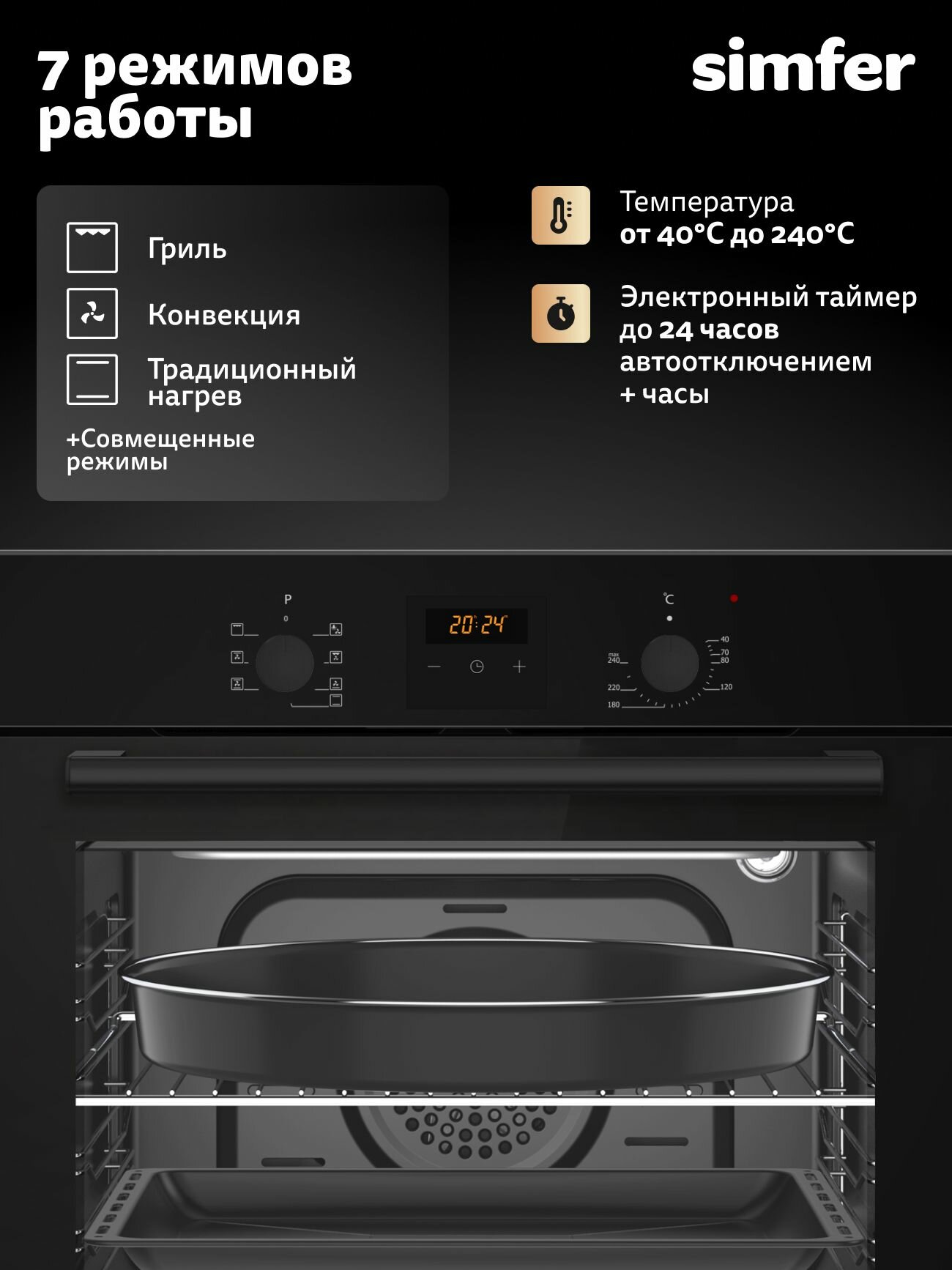 Духовой шкаф электрический встраиваемый 60см Simfer, 60л, гриль, конвекция, 2 противня, 7 режимов, 5 ЛЕТ гарантия: сравнение цен, характеристики, фото, актуальное наличие и цены.