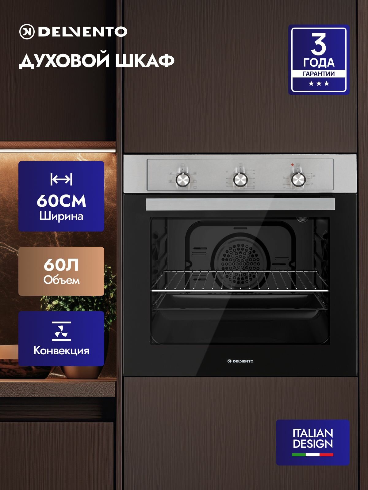 Купить Духовой шкаф электрический встраиваемый DELVENTO 60см, 60л, 5 режимов, конвекция, 2 стекла, таймер, 3 года гарантия с доставкой по всей России.
