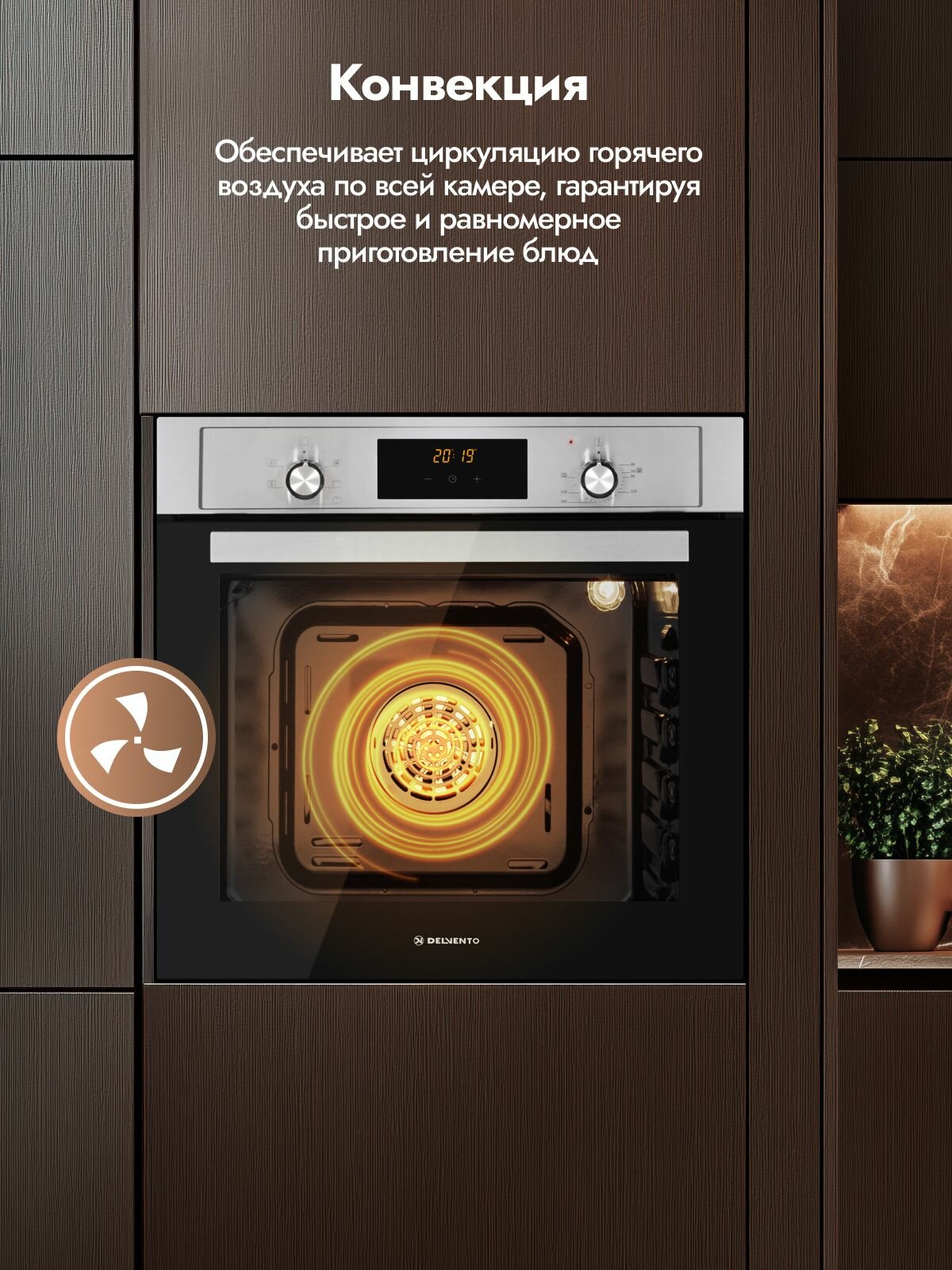 Купить Духовой шкаф электрический встраиваемый DELVENTO 60см, 60л, конвекция, 5 режимов, 2 стекла, таймер, 3 года гарантии с доставкой по всей России.