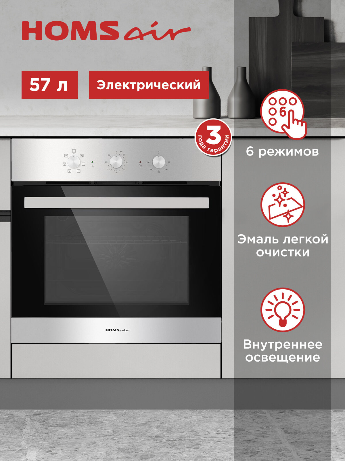 Духовой шкаф электрический встраиваемый HOMSair OEF657S нержавеющая сталь, с конвекцией, 6 режимов, 57 литров: сравнение цен, характеристики, фото, актуальное наличие и цены.