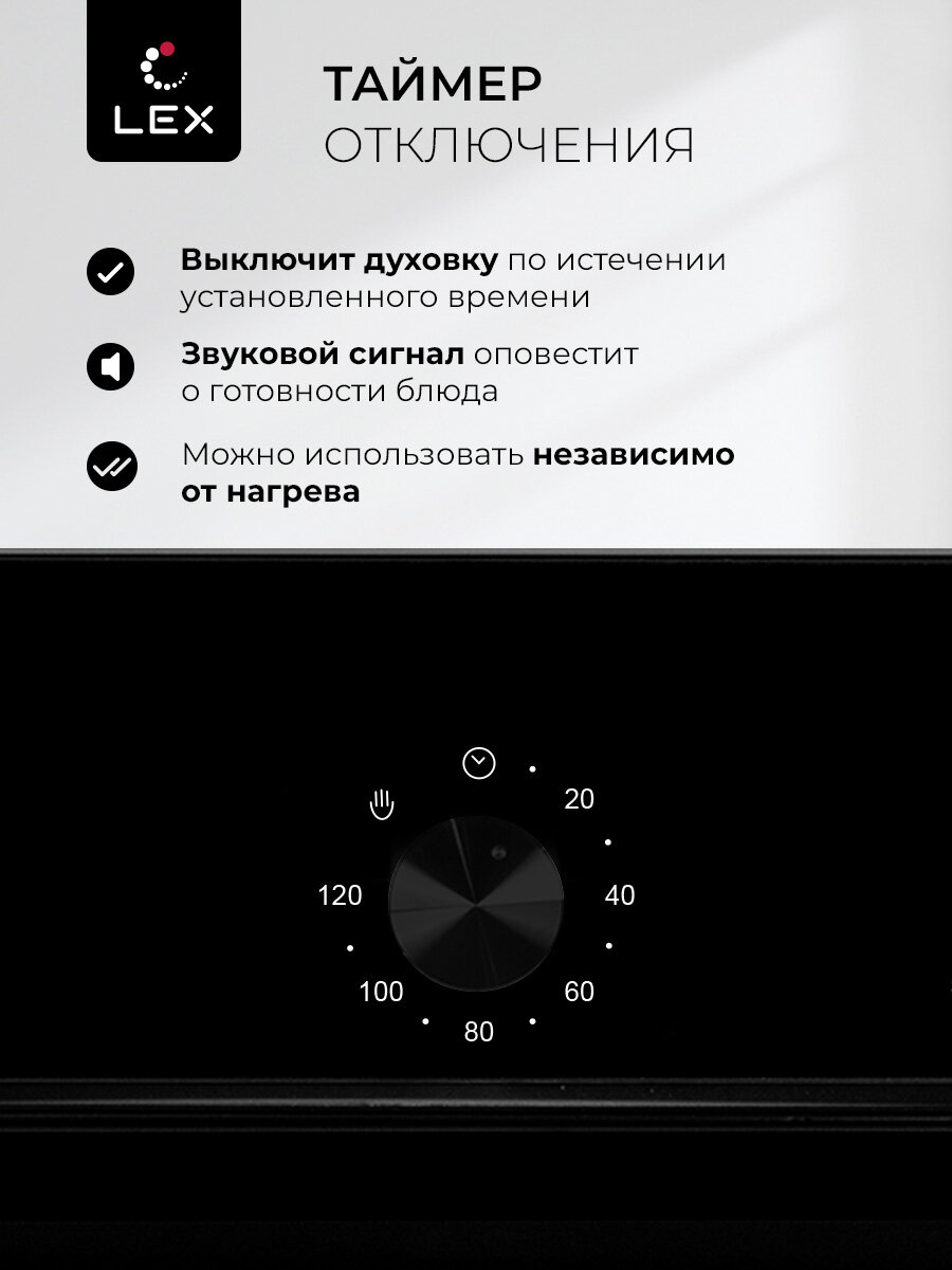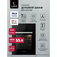 Купить Духовой шкаф электрический встраиваемый LEX EDM 4570 BBL, с конвекцией, Механические ручки, объем 53 л, 7 режимов работы, двойное остекление дверцы, гарантия 36,6 мес. с доставкой по всей России.