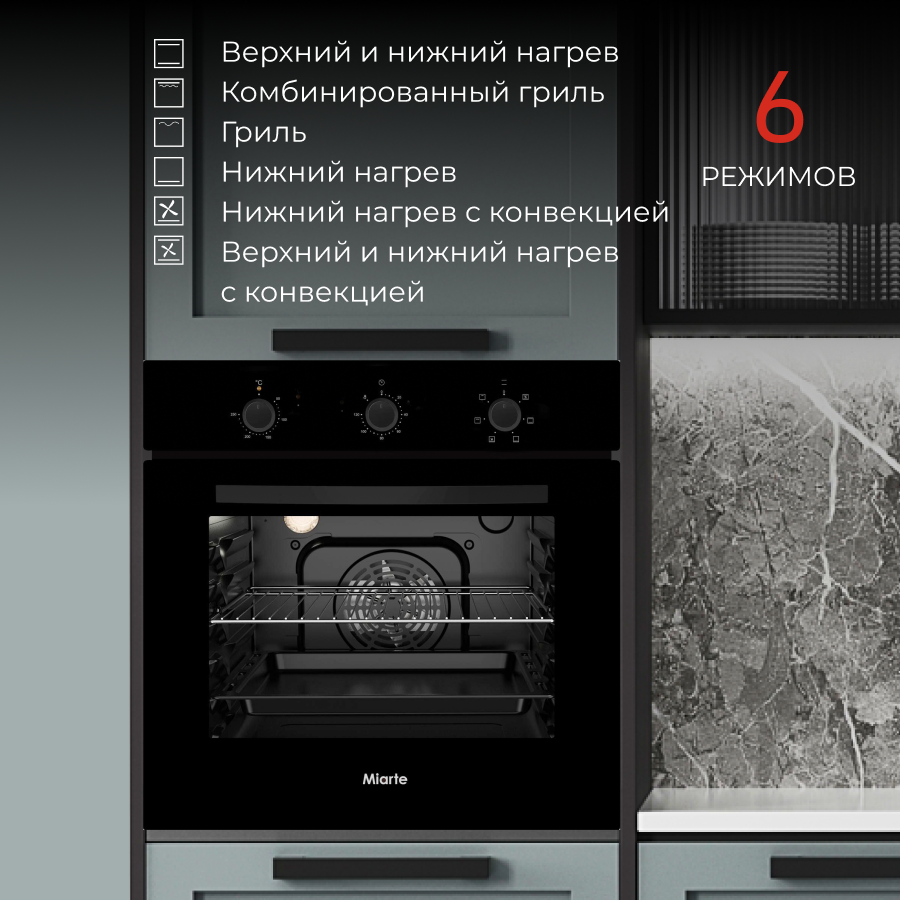 Купить Духовой шкаф электрический встраиваемый Miarte OV6051MC, 59 литров с доставкой по всей России.