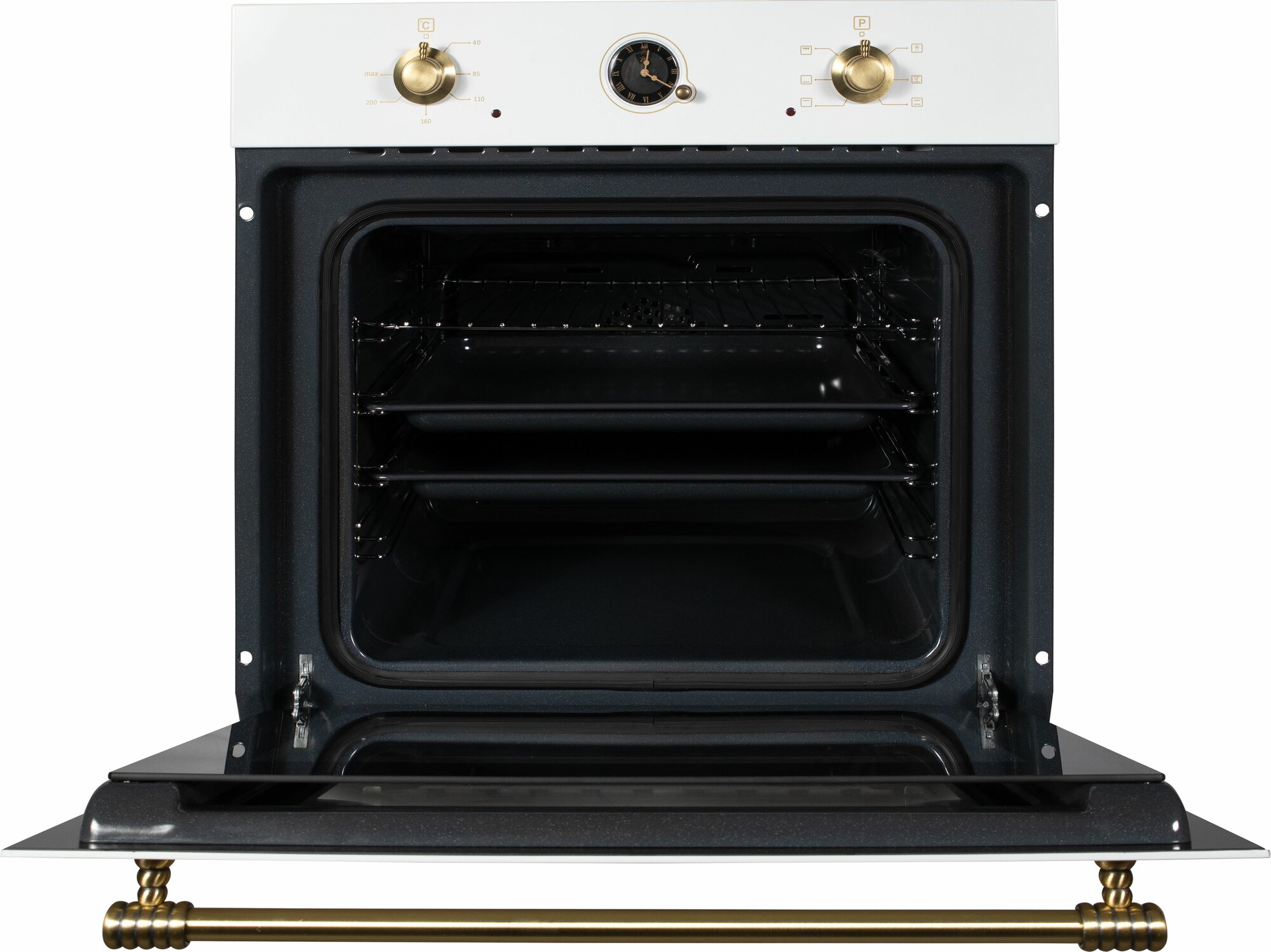 - Электрический духовой шкаф от il Monte BO-70, выполненный из закаленного стекла, оснащён поворотными ручками управления и дверцей в Ретро стиле "Rustic".