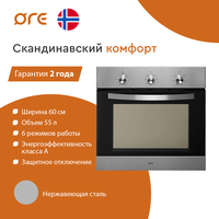 Духовой шкаф электрический встраиваемый ORE VS60, ширина 60 см, цвет серебристый, 6 режимов приготовления: сравнение цен, характеристики, фото, актуальное наличие и цены.