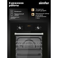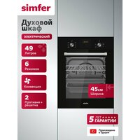 Купить Духовой шкаф электрический встраиваемый Simfer 45см, 6 режимов, гриль, конвекция, 49 литров, 2 стекла, 5 ЛЕТ ГАРАНTИИ с доставкой по всей России.