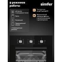 Купить Духовой шкаф электрический встраиваемый Simfer 45см, 9 режимов, гриль, 3D конвекция, таймер, 2 противня, 5 ЛЕТ гарантия с доставкой по всей России.