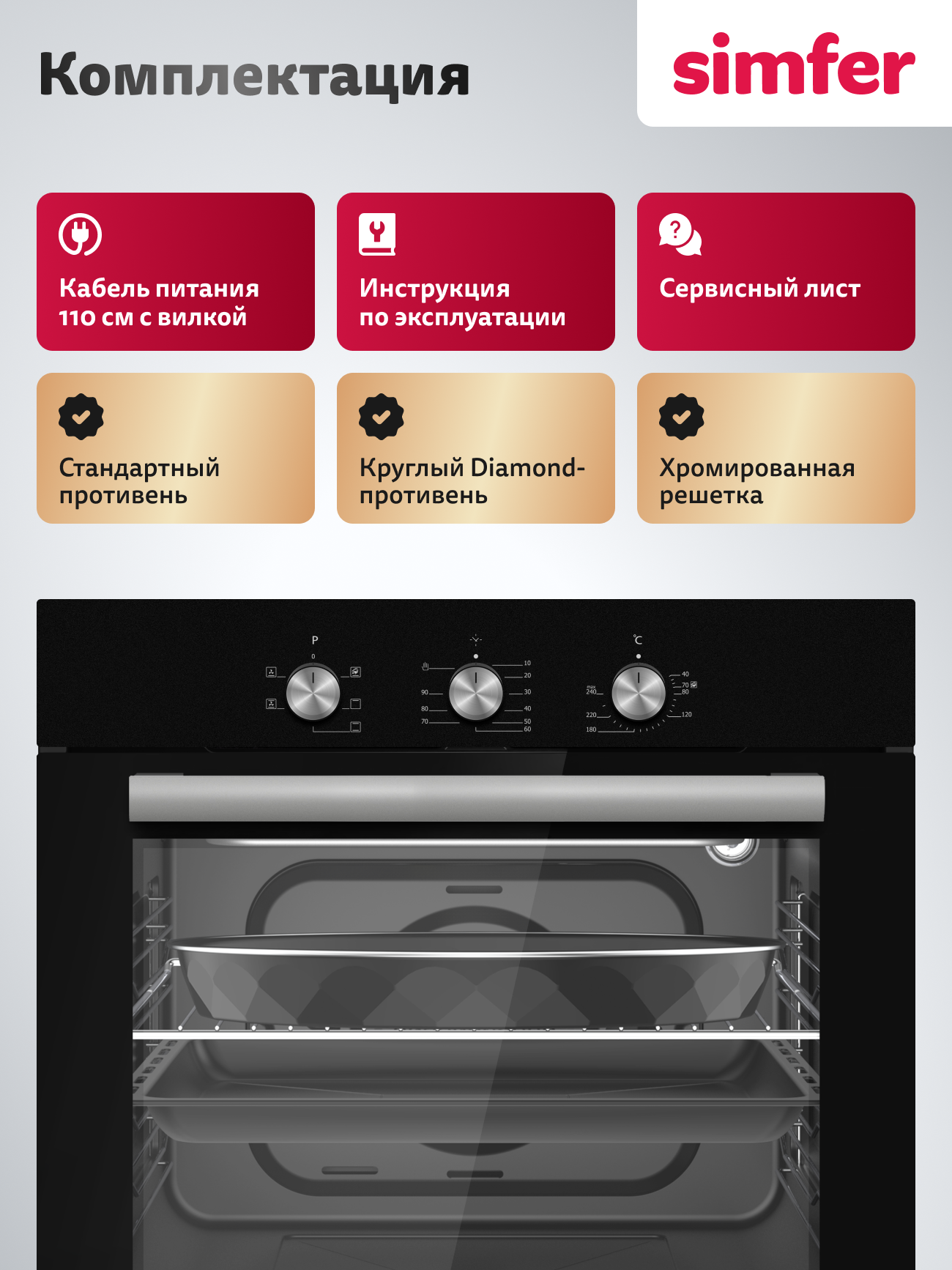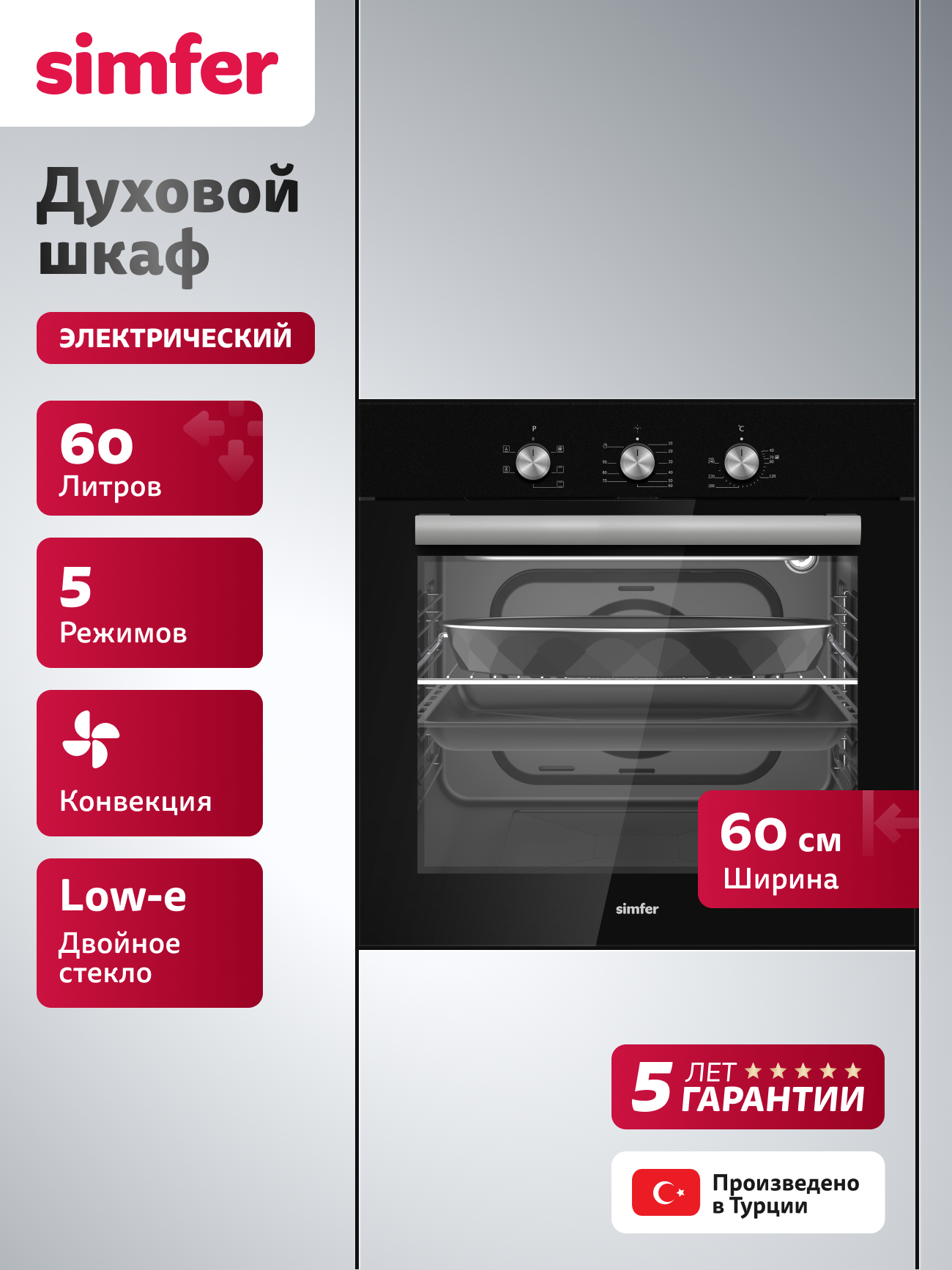 Духовой шкаф электрический встраиваемый Simfer 60см, 5 режимов, 60л, конвекция, таймер, 2 стекла, 5 ЛЕТ гарантия, турция: сравнение цен, характеристики, фото, актуальное наличие и цены.