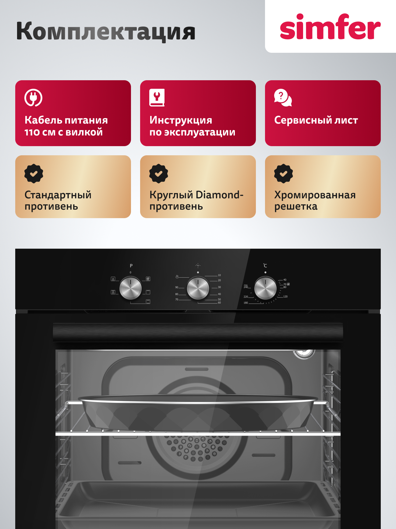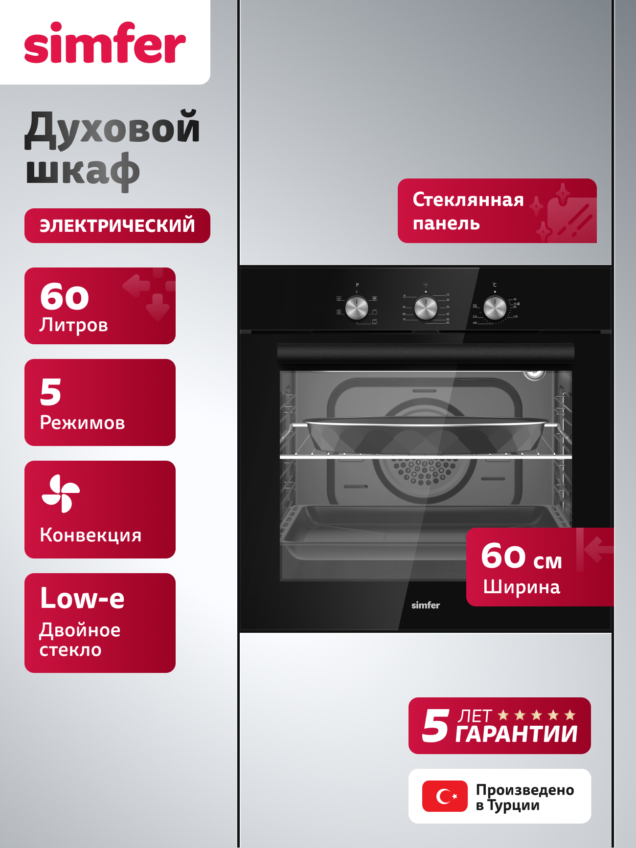 Духовой шкаф электрический встраиваемый Simfer 60см, 5 режимов, 60л, конвекция, таймер, 2 стекла, 5 ЛЕТ гарантия, турция: сравнение цен, характеристики, фото, актуальное наличие и цены.