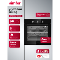 Купить Духовой шкаф электрический встраиваемый Simfer 60см, 5 режимов, 60л, конвекция, таймер, 2 стекла, 5 ЛЕТ гарантия, турция с доставкой по всей России.