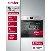Духовой шкаф электрический встраиваемый Simfer 60см, 60л, 5 режимов, конвекция, таймер, 2 противня, 5 ЛЕТ гарантия