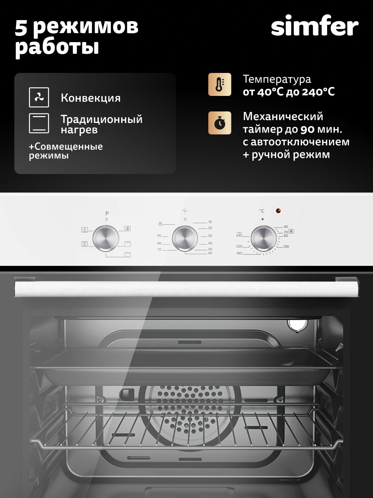 Духовой шкаф электрический встраиваемый Simfer 60см, 60л, 5 режимов, конвекция, подсветка, противень, 5 ЛЕТ гарантия: сравнение цен, характеристики, фото, актуальное наличие и цены.