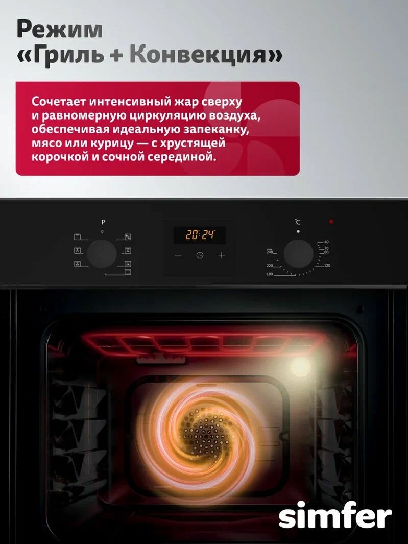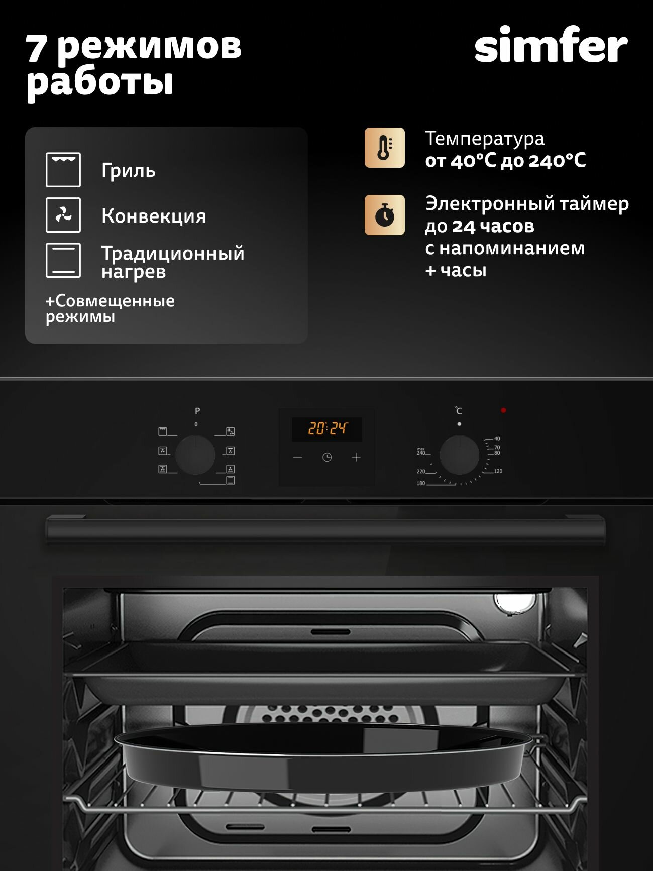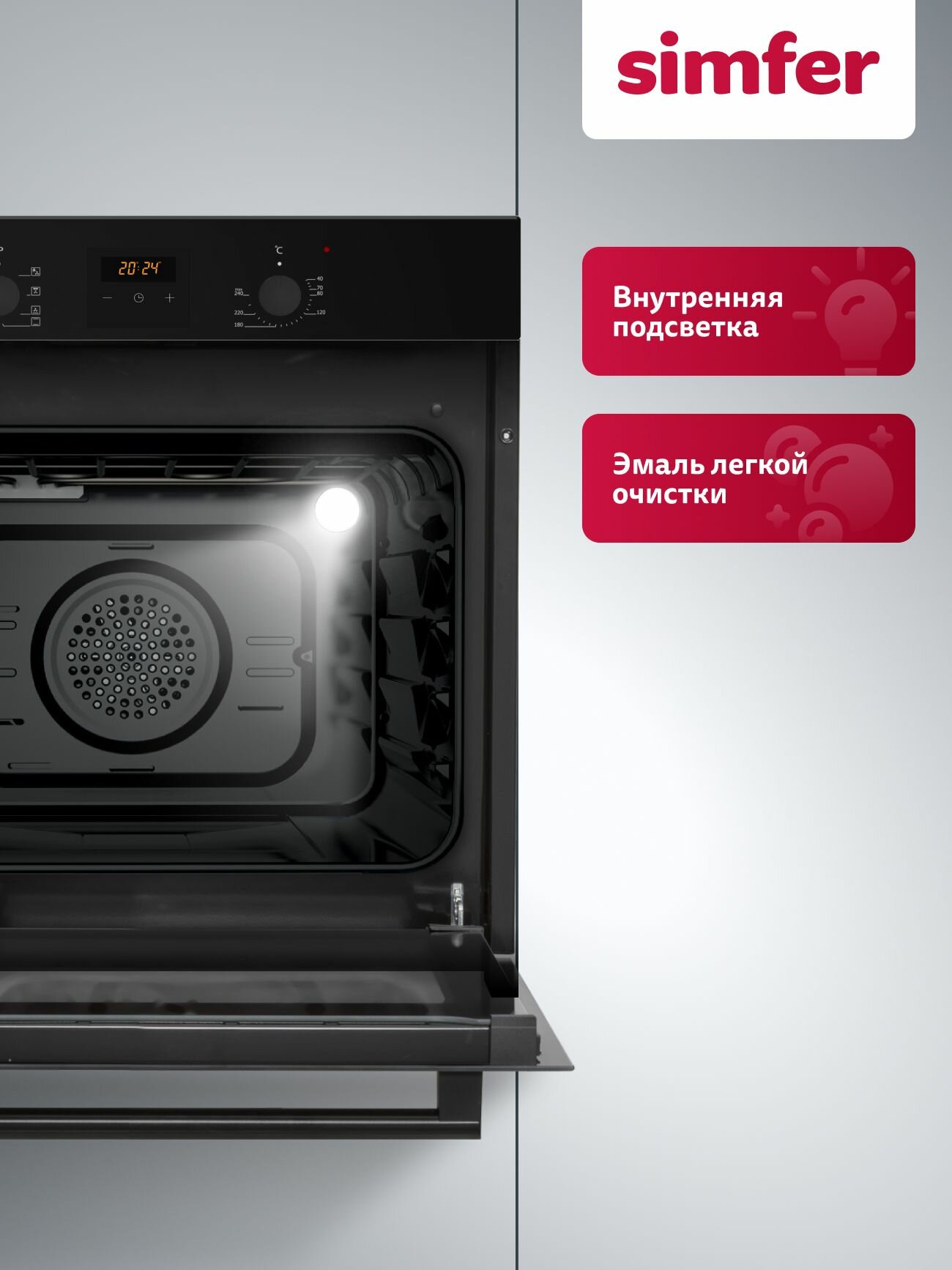 Духовой шкаф электрический встраиваемый Simfer 60см, 60л, 7 режимов, гриль, конвекция, 2 противня, 5 ЛЕТ гарантия: сравнение цен, характеристики, фото, актуальное наличие и цены.