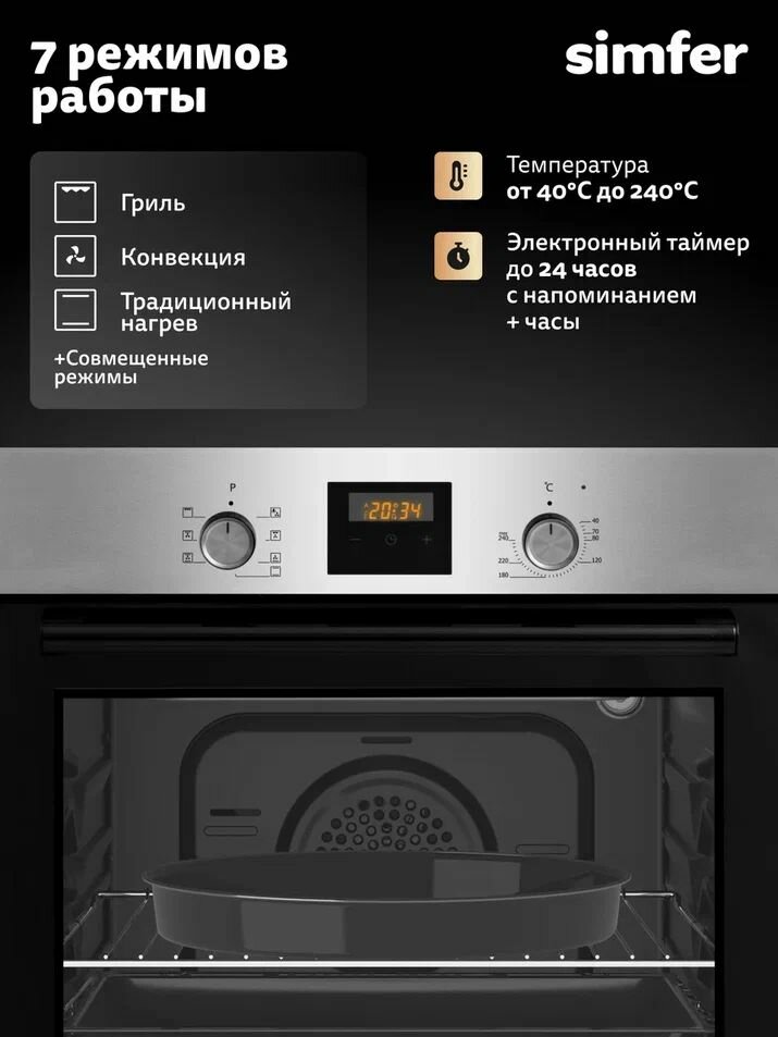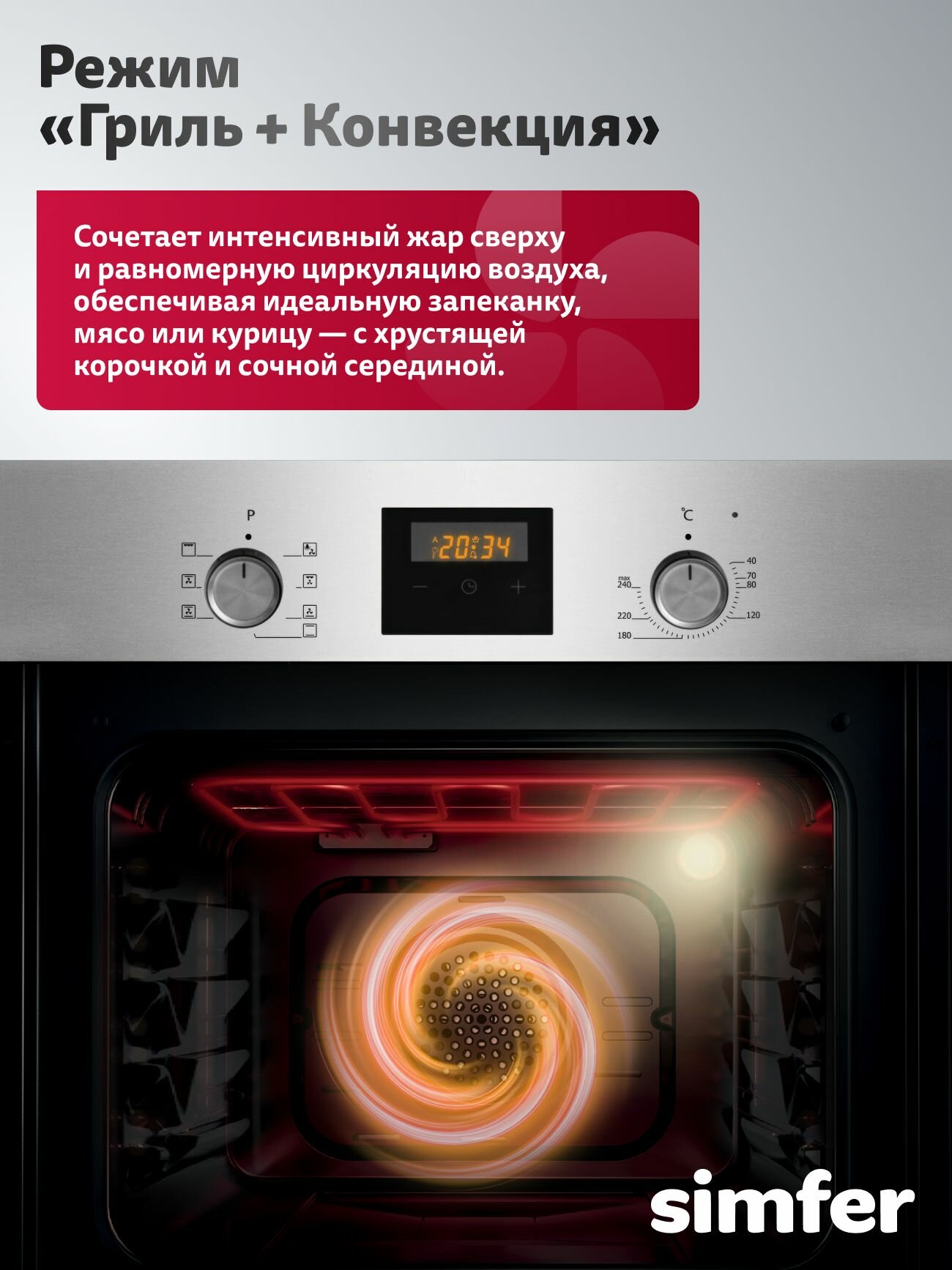 Духовой шкаф электрический встраиваемый Simfer 60см, 60л, 7 режимов, гриль, конвекция, 2 противня, 5 ЛЕТ гарантия: сравнение цен, характеристики, фото, актуальное наличие и цены.