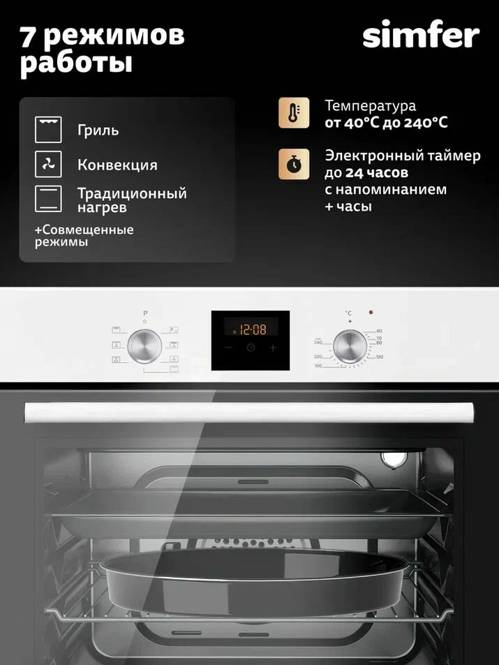 Духовой шкаф электрический встраиваемый Simfer 60см, 60л, 7 режимов, гриль, конвекция, таймер,2 противня, 5 ЛЕТ гарантия: сравнение цен, характеристики, фото, актуальное наличие и цены.