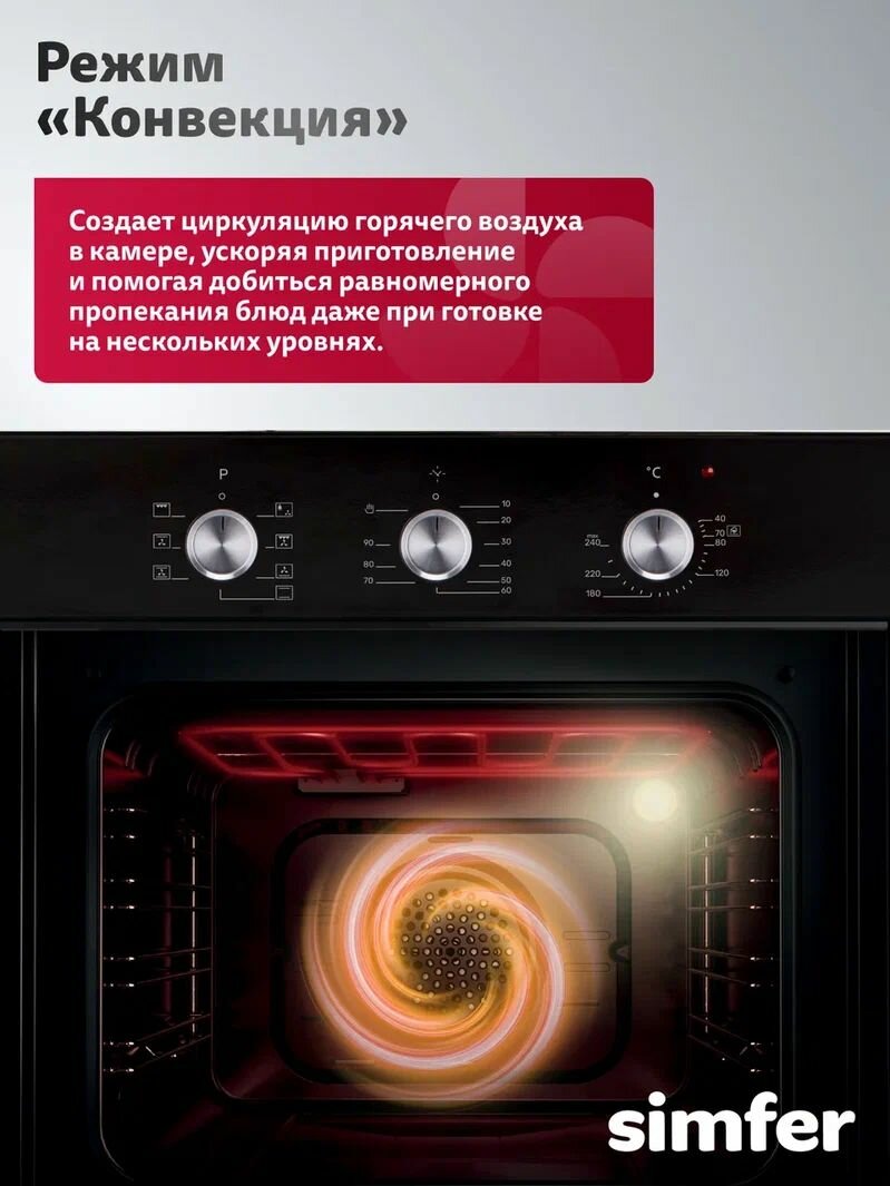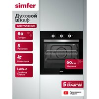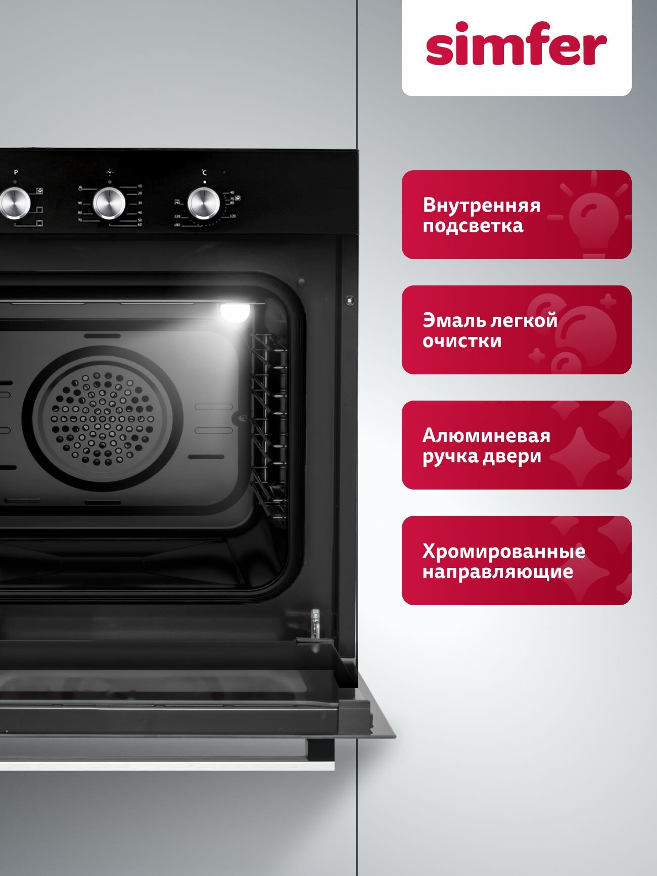 Духовой шкаф электрический встраиваемый Simfer 60см, 60л, конвекция, 5 режимов, направляющие, 2 стекла, 5 ЛЕТ гарантия: сравнение цен, характеристики, фото, актуальное наличие и цены.