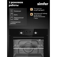 Купить Духовой шкаф электрический встраиваемый Simfer 60см, 7 режимов, 60л, гриль, конвекция, Push Pull, таймер, 5 ЛЕТ гарантия с доставкой по всей России.