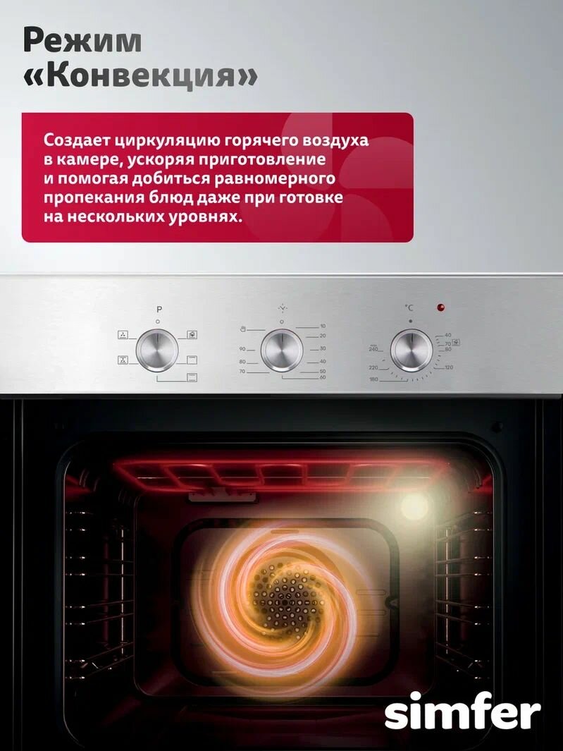 Духовой шкаф электрический встраиваемый Simfer 60см, конвекция, 5 режимов, 60л, подсветка, 2 стекла, 5 ЛЕТ гарантия: сравнение цен, характеристики, фото, актуальное наличие и цены.