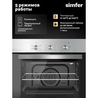 Купить Духовой шкаф электрический встраиваемый Simfer 60см, конвекция, 5 режимов, 60л, подсветка, 2 стекла, 5 ЛЕТ гарантия с доставкой по всей России.