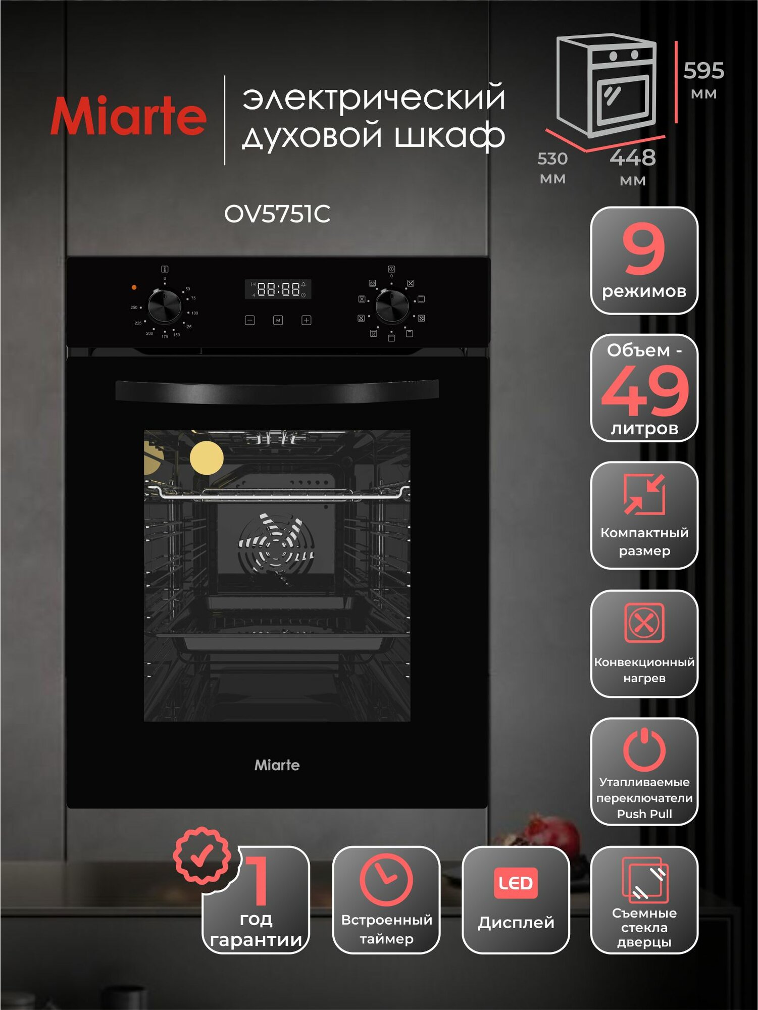 Духовой шкаф электрический встраиваемый узкий Miarte OV5751C 45 см: сравнение цен, характеристики, фото, актуальное наличие и цены.
