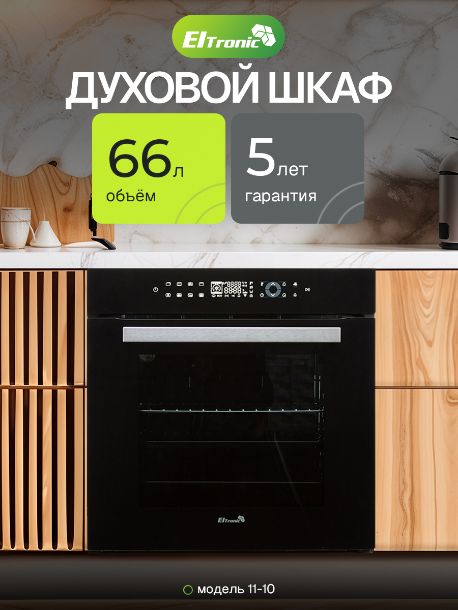 Духовой шкаф Eltronic 11-10, электрический, сенсорное управление, конвекция, черный: сравнение цен, характеристики, фото, актуальное наличие и цены.