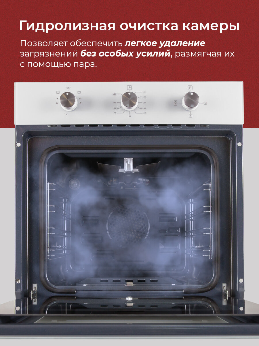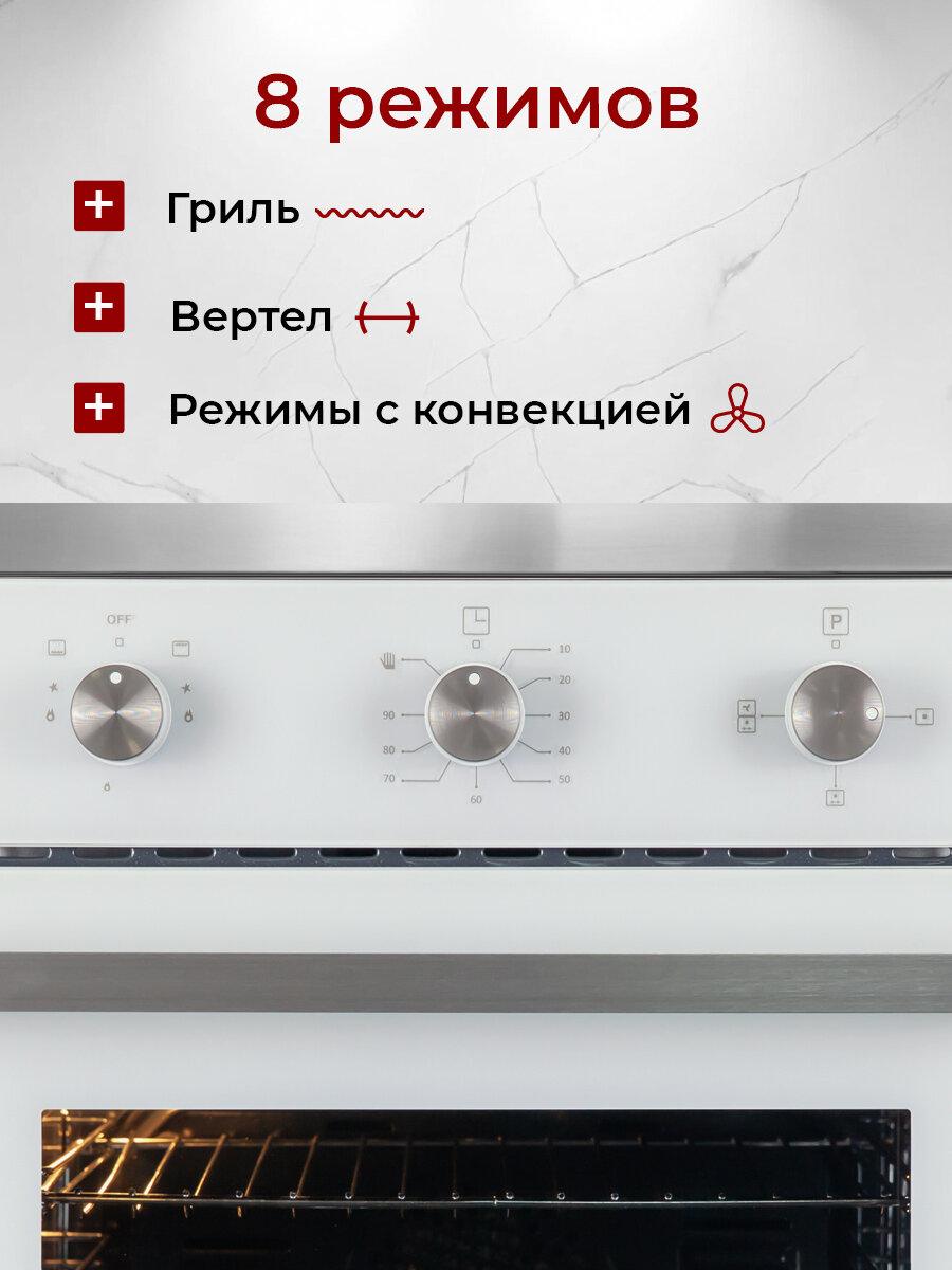 Купить Духовой шкаф газовый MBS DG-604WH/ширина 60см/8 режимов/объём 62л/механическое управление/двойное стекло с доставкой по всей России.