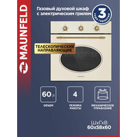 Купить Духовой шкаф газовый встраиваемый MAUNFELD EOGC604RIB. MT Slim, 4 режима, гриль, газ-контроль, 60 см, ретро, 60 литров с доставкой по всей России.