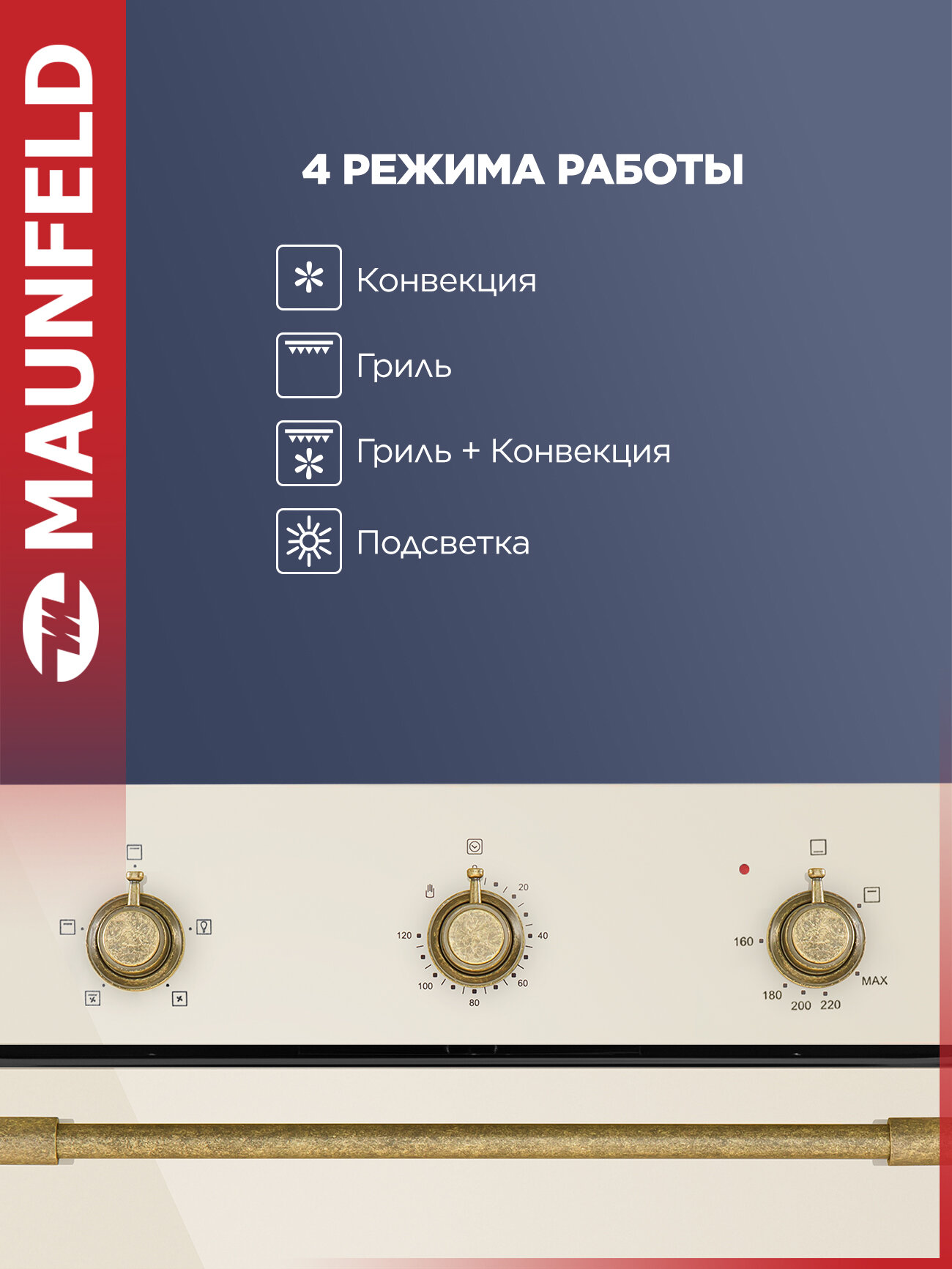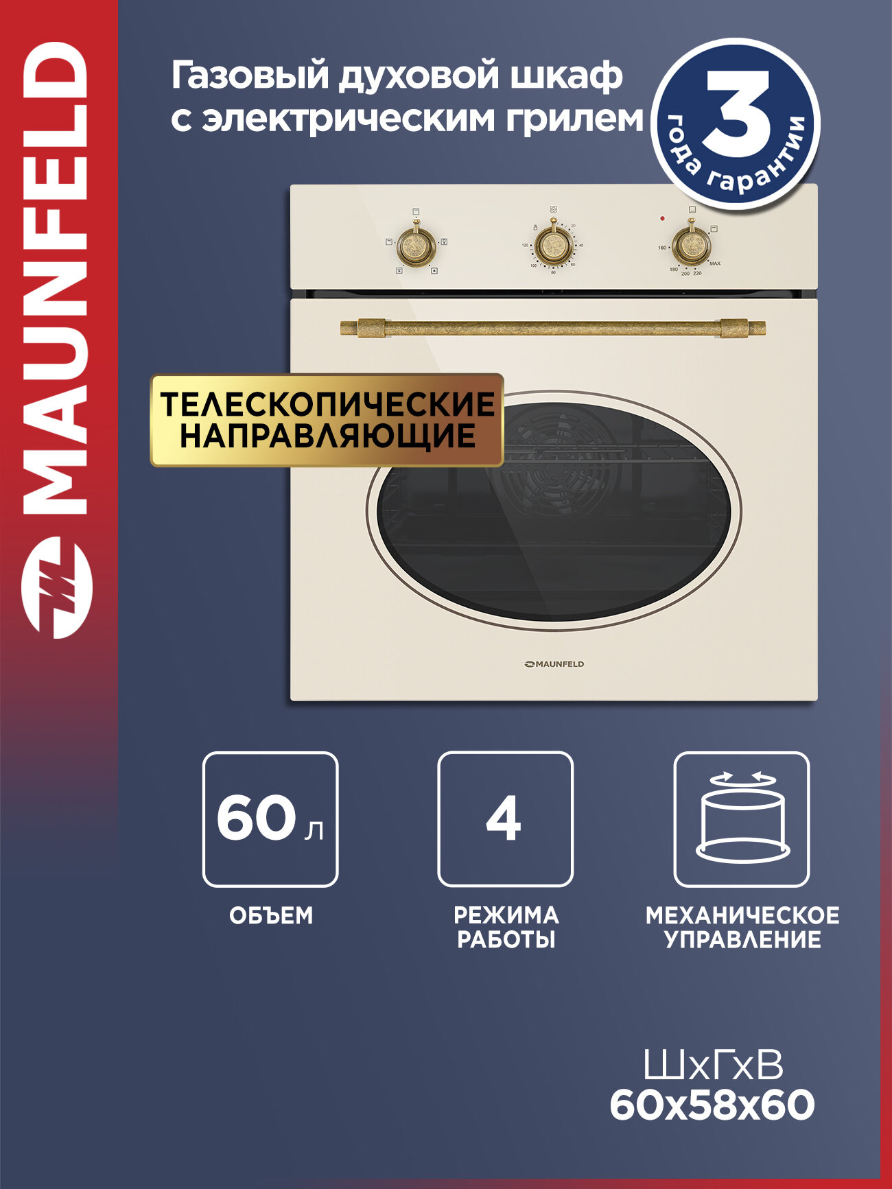 Духовой шкаф газовый встраиваемый MAUNFELD EOGC604RIB. MT Slim, 4 режима, гриль, газ-контроль, 60 см, ретро, 60 литров: сравнение цен, характеристики, фото, актуальное наличие и цены.