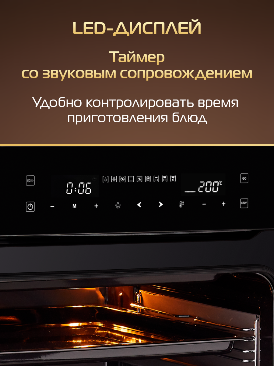 Купить Духовой шкаф HIBERG VM 6192 B встраиваемый, 9 режимов, электронное управление, конвкекция, гриль, цвет чёрный с доставкой по всей России.