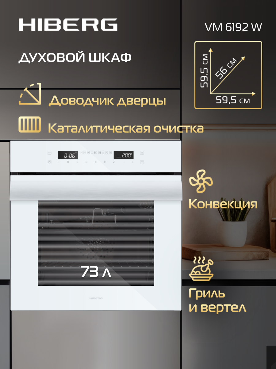 Духовой шкаф HIBERG VM 6192 W встраиваемый, 9 режимов, электронное управление, конвкекция, гриль, цвет белый: сравнение цен, характеристики, фото, актуальное наличие и цены.