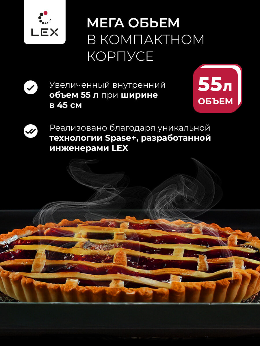 Купить Духовой шкаф LEX EDM4570BBL электрический черный 55 л 7 режимов гриль конвекция 45.5x58x59.5 см с доставкой по всей России.