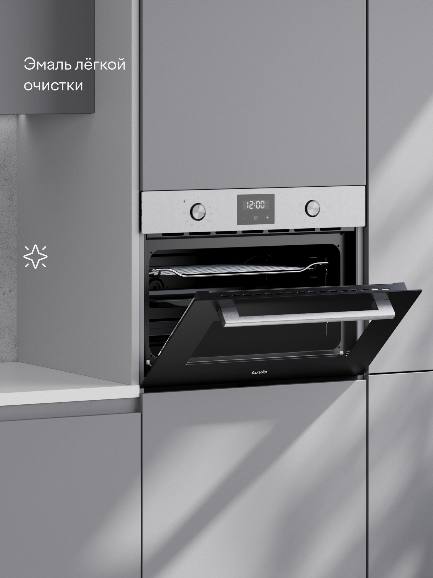 Купить Духовой шкаф Tuvio NC43TSSB1, 45л, 60 см, конвекция, гриль, 8 режимов, Easy Clean, 3 стекла, 5 лет гарантии, сталь с доставкой по всей России.