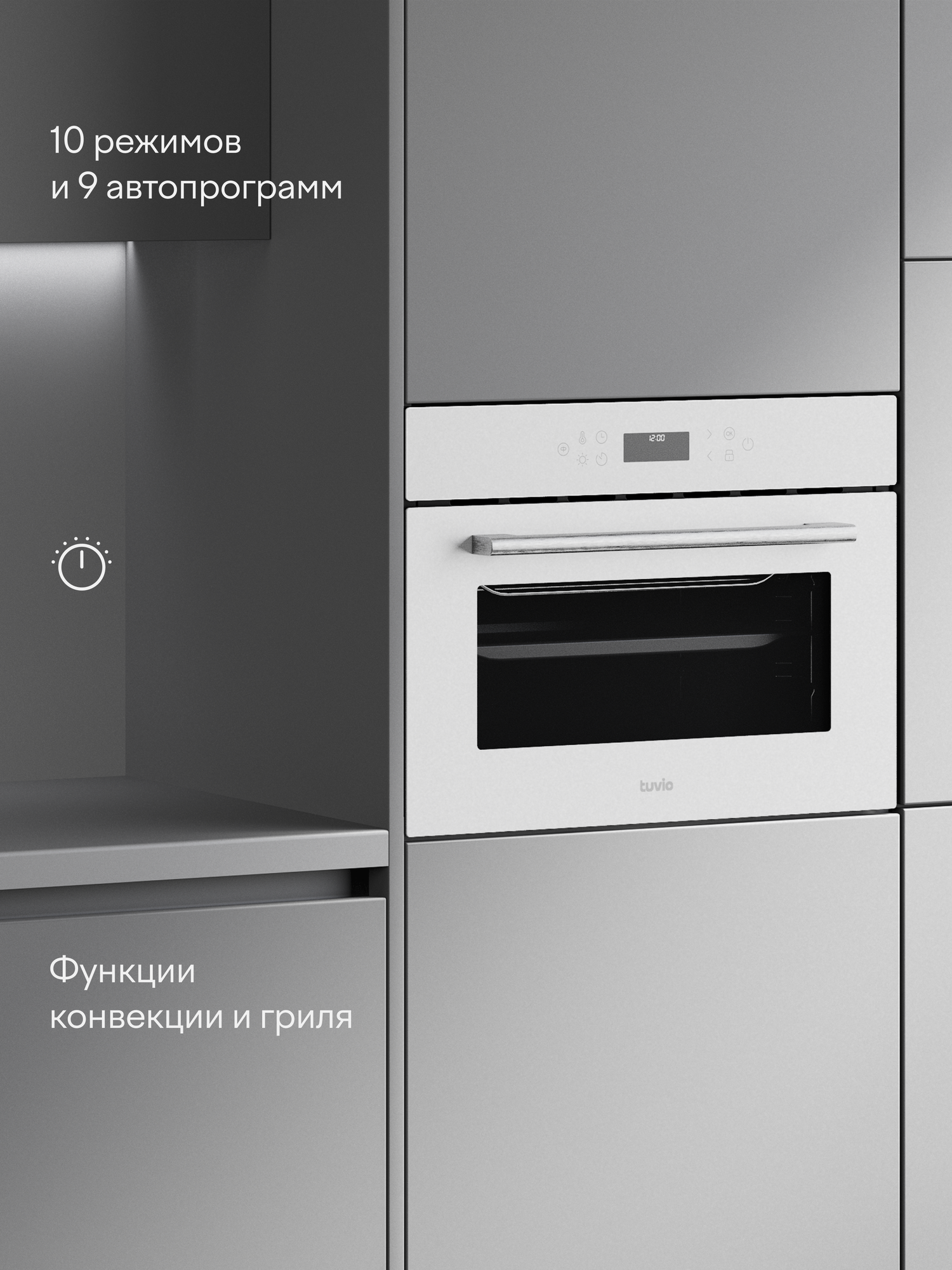 Купить Духовой шкаф Tuvio NC86TVWGB1, 45л, 60 см, конвекция, гриль, 10 режимов, Easy Clean, Алиса, 5 лет гарантии, белый с доставкой по всей России.